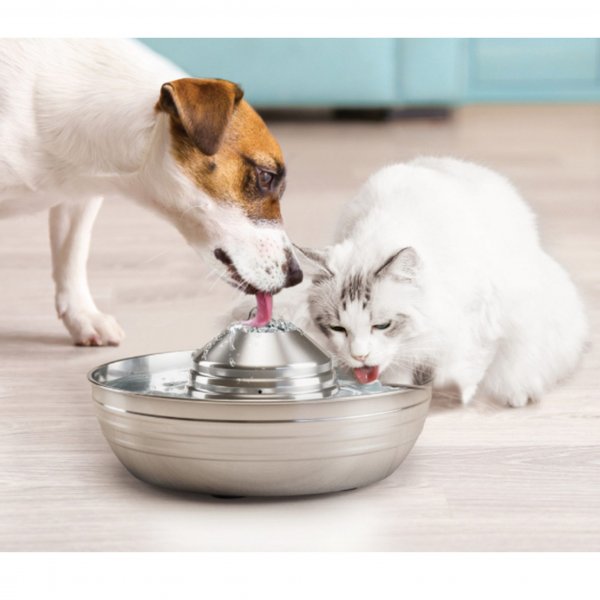 Petwant PWS-102 je fontána pro kočky a malé psy vyrobena z kvalitního nerezu. Kapacita 2 litrů pomáhá dodržovat pitný režim všech domácích mazlíčků bez ohledu na velikost plemene. Fontána má velmi tichý provoz a vašemu mazlíčkovi nabídne vždy čerstvou a čistou vodu. Výhodou fontány je zabudovaný filtrační systém, který zabraňuje tomu, aby se částečky jako chlupy nebo zbytky krmiva nedostaly do pumpy a zároveň zbavuje vodu nežádoucího zápachu.