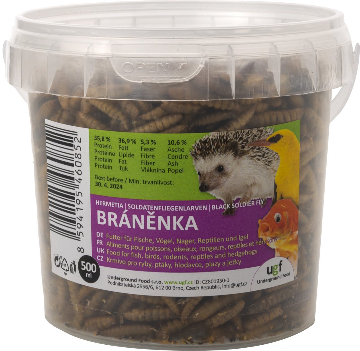 Přírodní doplňkové krmivo pro ptáky, ryby, plazy a drobné savce, jako jsou ježci, myši nebo potkani.