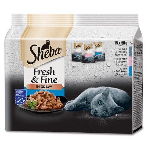 Složení: Maso a výrobky živočišného původu (40 %), ryby a vedlejší produkty z ryb (včetně 4 % tresky), výrobky rostlinného původu, minerální látky, různé cukry. Maso a výrobky živočišného původu (40 %), ryby a vedlejší produkty z ryb (včetně 4 % lososa), výrobky rostlinného původu, minerální látky, různé cukry. Maso a výrobky živočišného původu (40 %), ryby a vedlejší produkty z ryb (včetně 4 % tuňáka), výrobky rostlinného původu, minerální látky, různé cukry.