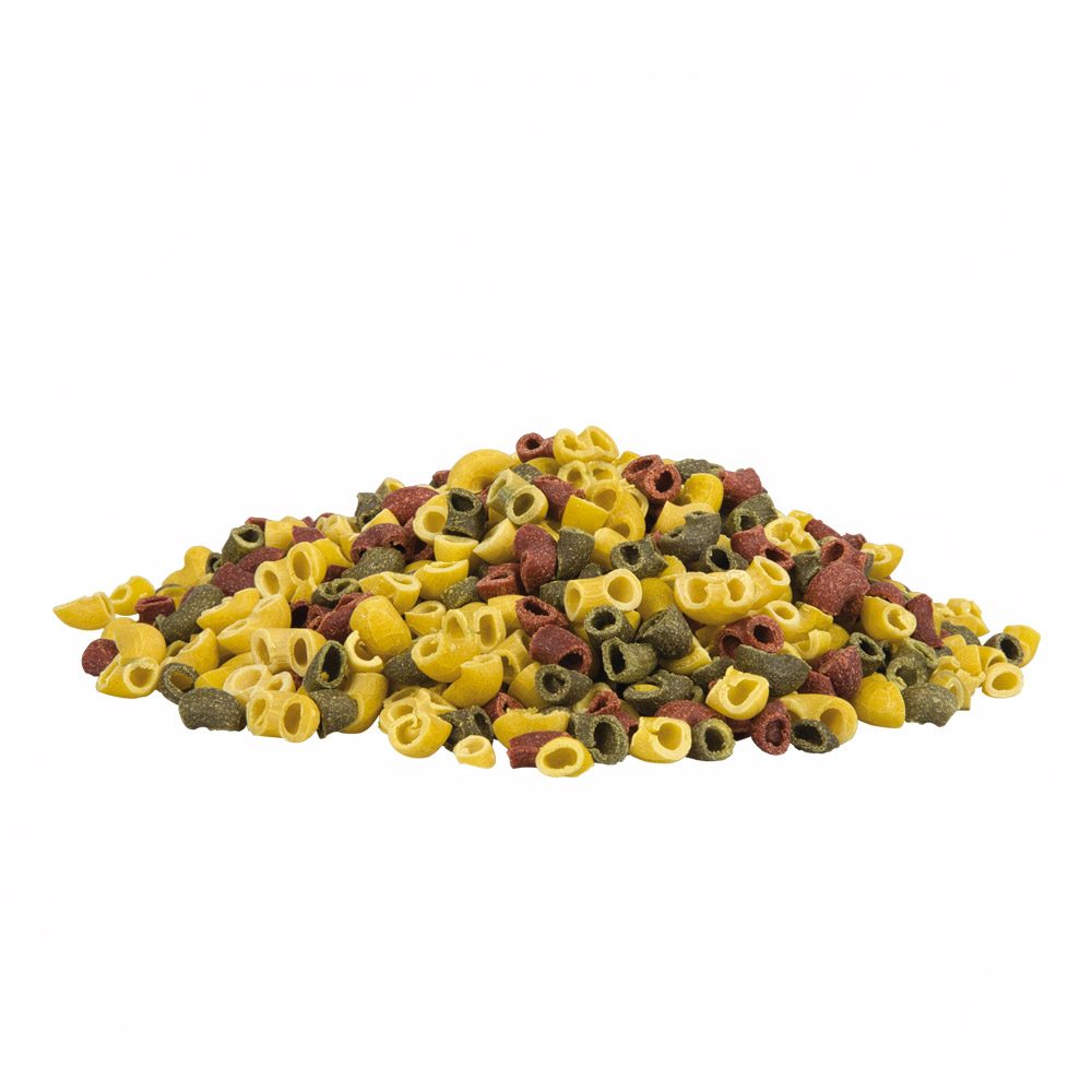 Doplňkové krmivo pro psy, barevné těstoviny.