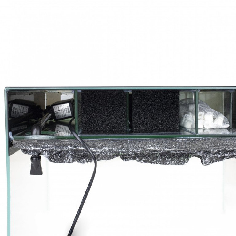 Akvárium s 3D pozadím, komorovou filtrací a čerpadlem.