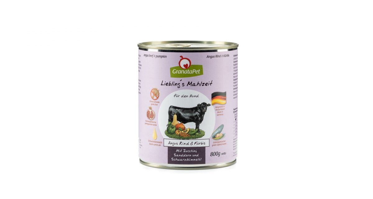 GranataPet Hovězí Angus s dýní, cuketou, rakytníkem a olejem z černého kmínu pro vitální a dlouhý život