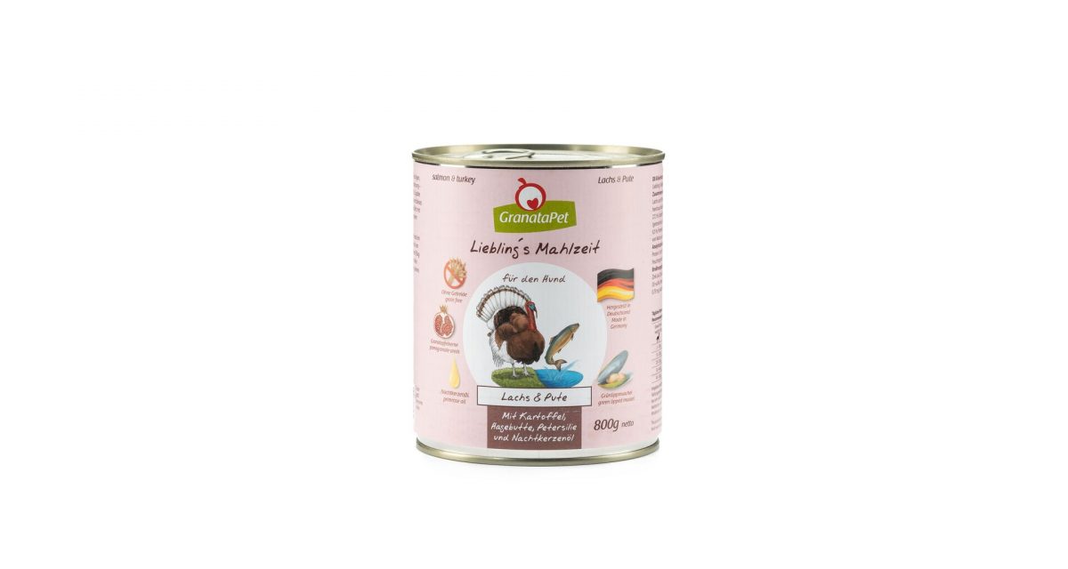 Druh masa: Krůtí maso, Losos Výrobce: GranataPet Speciální vlastnosti: Bez lepku, Grain free / Bez obilovin, Bez sóji, Bez kukuřice, Holistické, Bez mléčných produktů Obsah masa: Nad 60 % Stáří psa: Junior / Štěně, Adult / Dospělý, Senior Kompletní krmivo pro: Psy Doplňkové krmivo pro: Psy Balení: 800 g