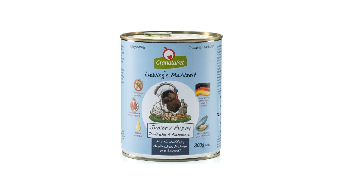 Konzerva pro psy GranataPet Puppy/Junior krůta & králík s bramborami, pastinákem, mrkví a lososovým olejem