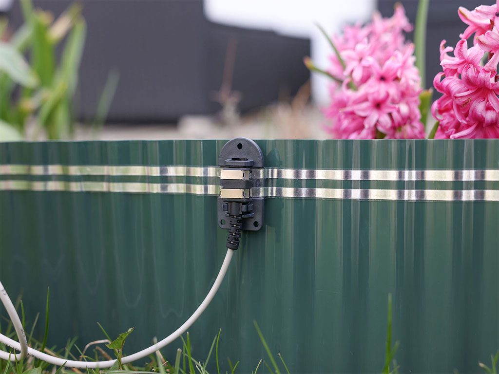 Elektrický ohradník, ochrana proti slimákům, snadná instalace a údržba, neškodné životní prostředí, délka pásky 10m, zdroj baterie 9V. Pokud chcete uchránit Vaši zeleninu před slimáky, zakupte si tento inovativní a efektivní prostředek k jejich odpuzení. Díky snadné instalaci a údržbě Vám elektronický ohradník spolehlivě ochrání zeleninu na Vaší zahradě. Elektrický ohradník je vhodnou variantou bez nutnosti použití jedu a přátelský k životnímu prostředí. Pro ostatní lidi a zvířata zcela neškodný, stejně tak pro samotné slimáky, které velmi nízké napětí (9V) přinutí otočit se zpět. Další výhodou elektrického ohradníku je možnost prodloužení až na 30 metrů. Elektrický ohradník je díky plotové pásce možné nalepit na dřevo, kov, plast, kámen nebo beton.