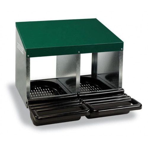 Na snášení vajec z pozinkovaného plechu pro nosnice, dodává se včetně košíků. Košíky mají sklon, po kterém se snesené vejce skutálí do úkrytu, takže slepice ho nemůže rozbít.
