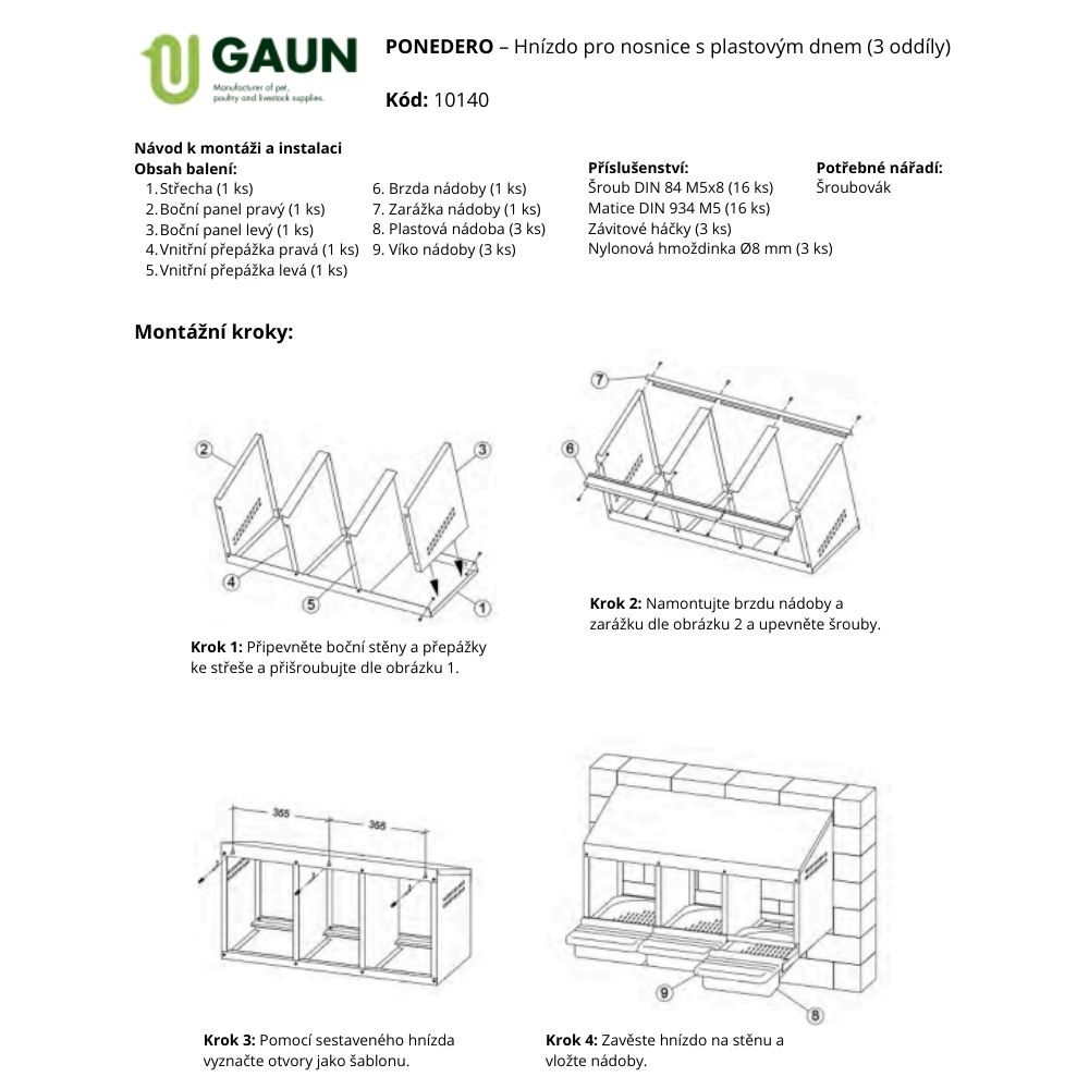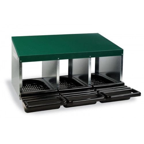 Na snášení vajec z pozinkovaného plechu pro nosnice, dodává se včetně košíků. Košíky mají sklon, po kterém se snesené vejce skutálí do úkrytu, takže slepice ho nemůže rozbít.