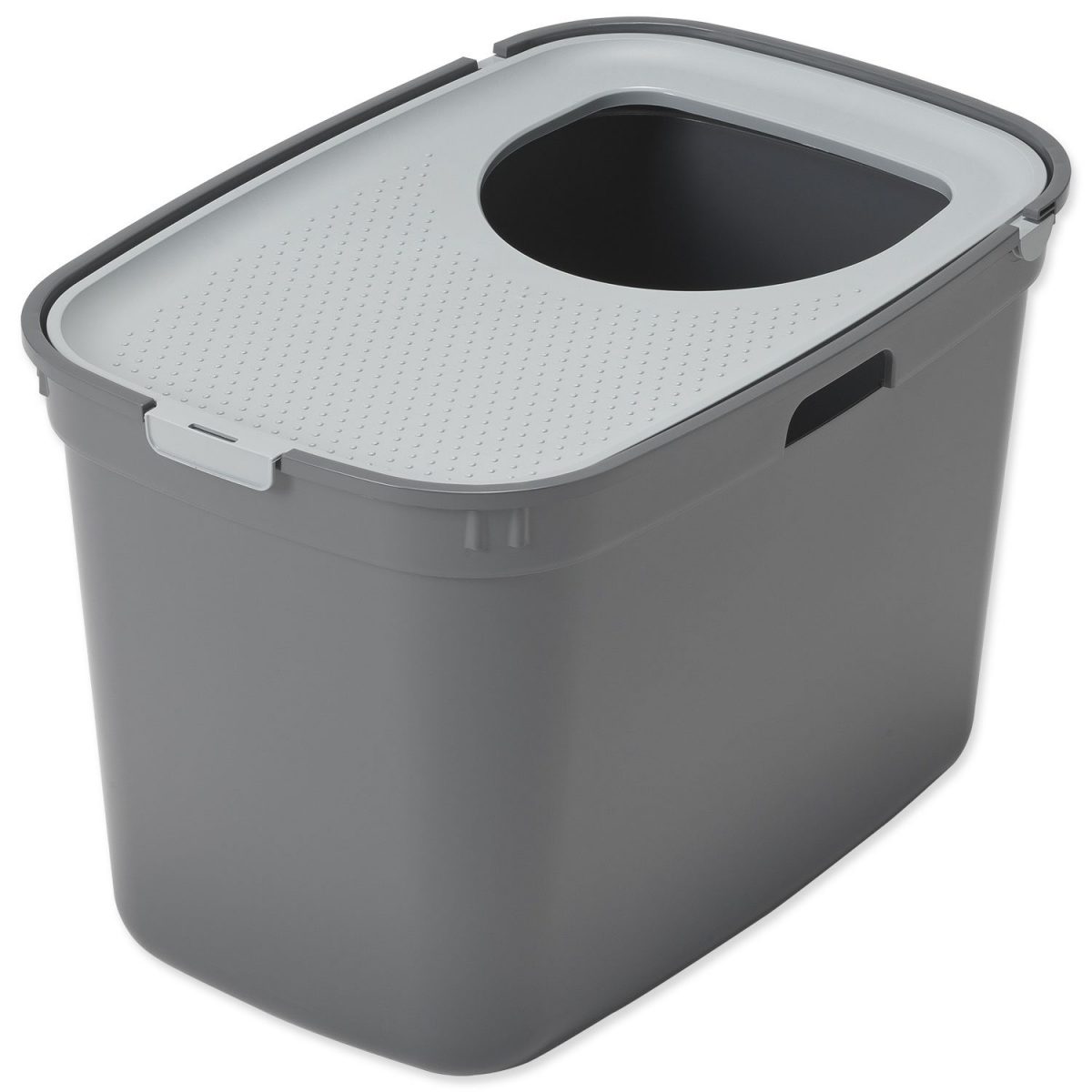 Kryté WC Top Cat vhodné pro koťata i velké kočky díky dostatečně velkému otvoru. Horní víko s průlezem zajistí 100% soukromí a zabraňuje vynášení podestýlky na podlahu.