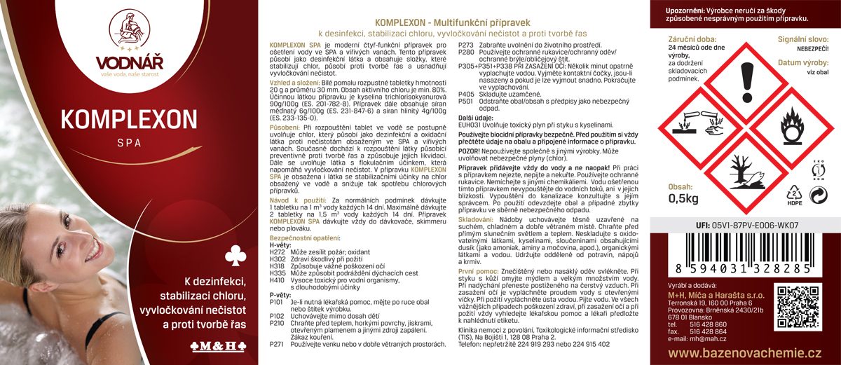 V přípravku Komplexon SPA je obsažena i látka se stabilizačními účinky na chlor obsažený ve vodě a snižuje tak spotřebu chlorových přípravků.