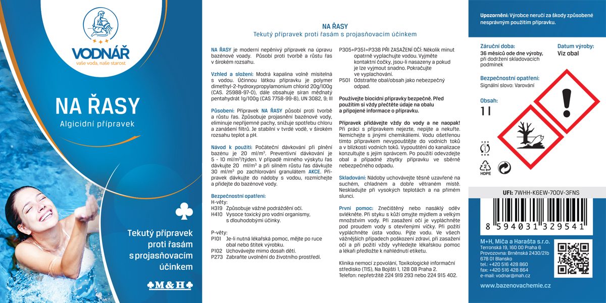 PARAMETRY PRODUKTU VODNÁŘ NA ŘASY 1L: