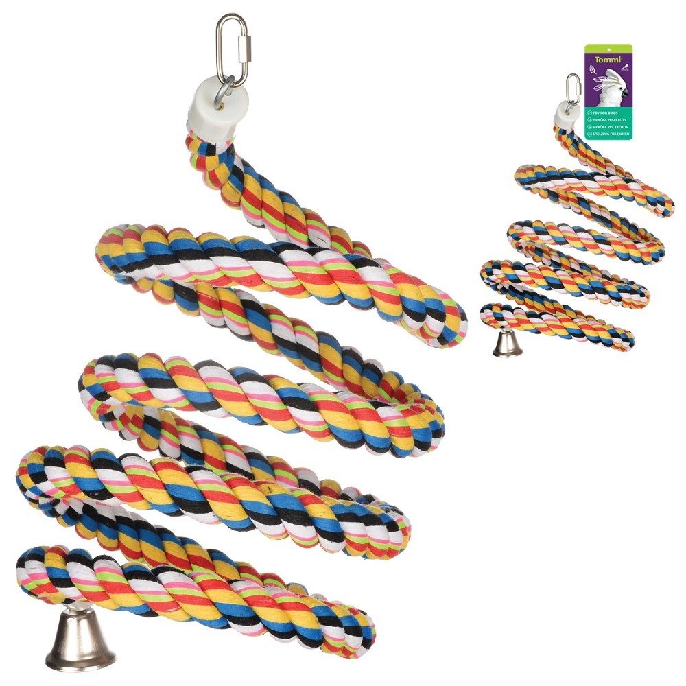 Bavlněná spirála se zvonkem pro velké exoty. Materiál : bavlněné lano, kov