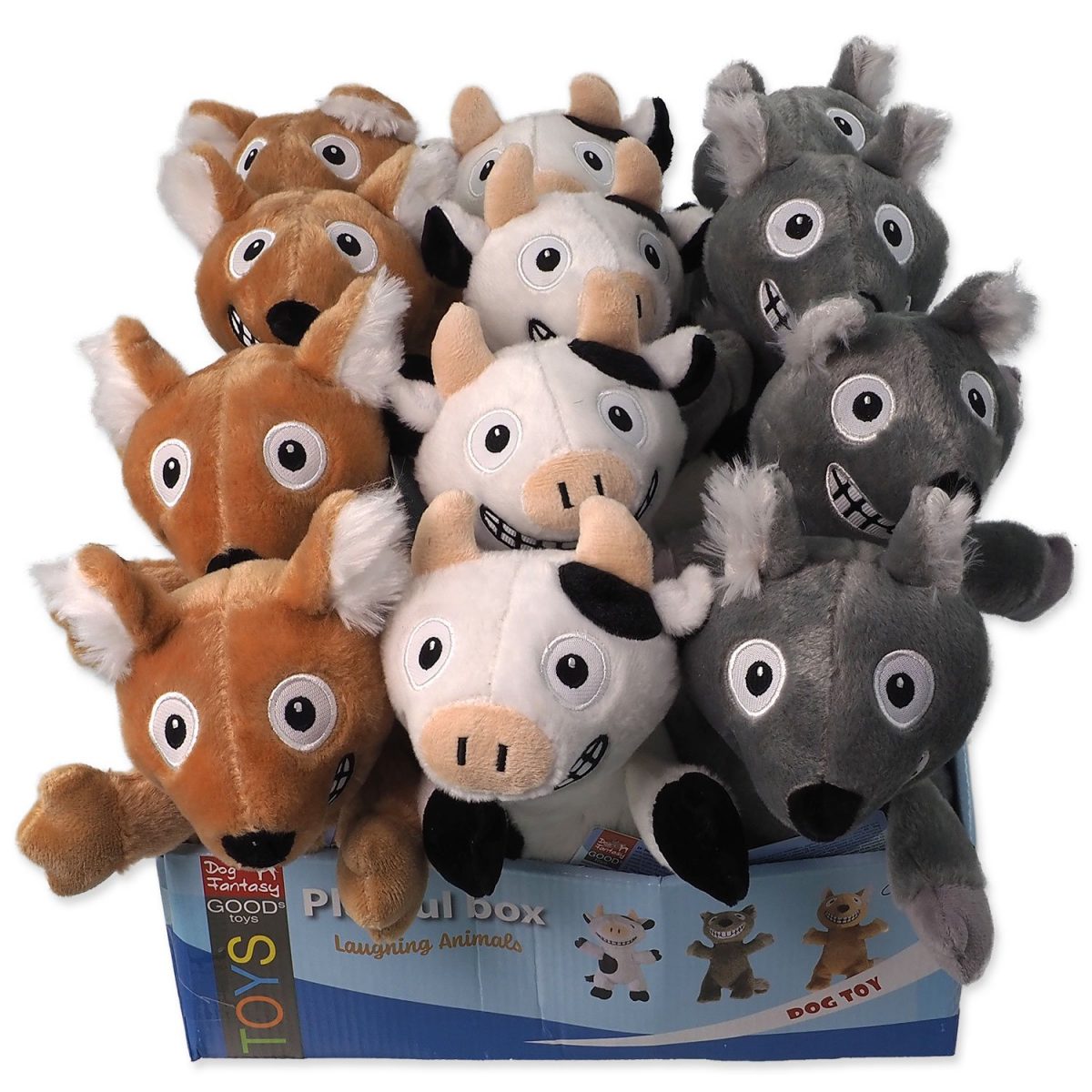 Mix 3 zvířátek z farmy a 3 usmívajících se zvířátek s pískátkem. Mix 3 zvířátek z farmy a 3 usmívajících