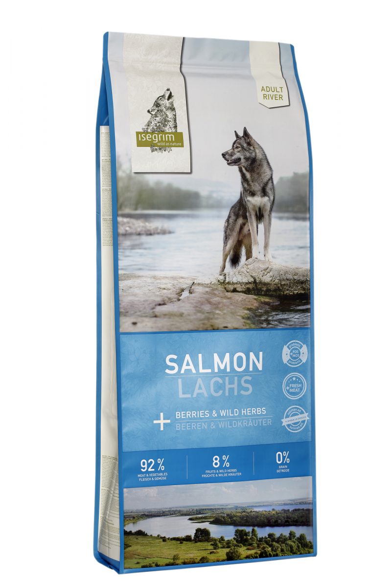 Složení: čerstvý losos (32 %), sušený losos (25 %), brambory (16 %), drůbeží tuk (8 %), hrách 3 %, lesní plody (borůvky, brusinky, maliny) (4 %), lososový olej (3 %), jablka (3 %), mrkev (2 %), hydrolyzovaný kuřecí protein (3 %), hydrolyzovaná kuřecí játra (2 %), bramborový protein (1 %), glukosamin, mannan-oligosacharidy, chondroitin sulfát, frukto-oligosacharidy, směs bylin (pampeliška, heřmánek, jitrocel, rozmarýn, řebříček, petržel, psyllium, extrakt z měsíčku lékařského), extrakt z juky.