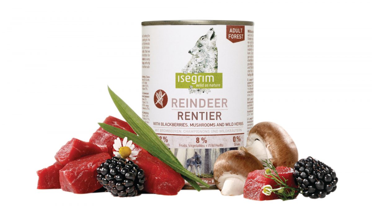 Složení: sob (62 %), vývar (28,8 %), ostružiny (4 %), žampiony (4 %), minerály (1 %), bylinky (0,1 %), lososový olej (0,1 %).