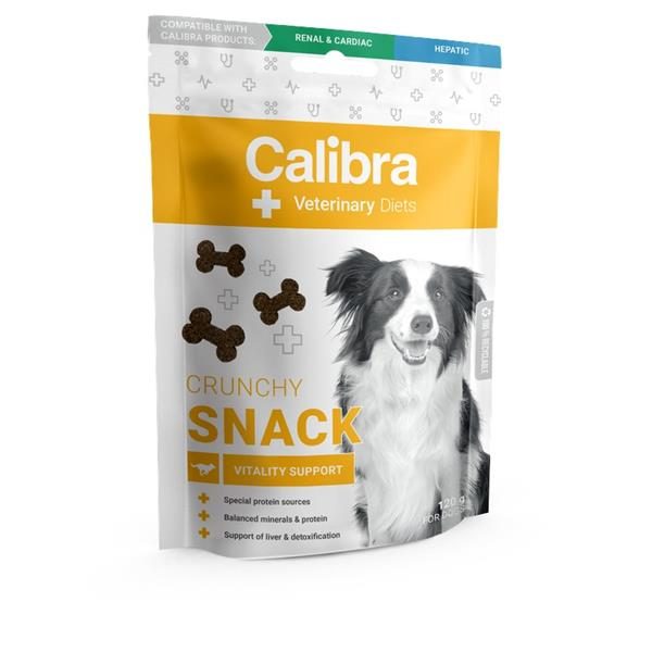Receptura Vitality Support Crunchy Snack je kompatibilní také s veterinární dietou Calibra VD Dog Renal & Cardiac a Calibra VD Dog Hepatic.