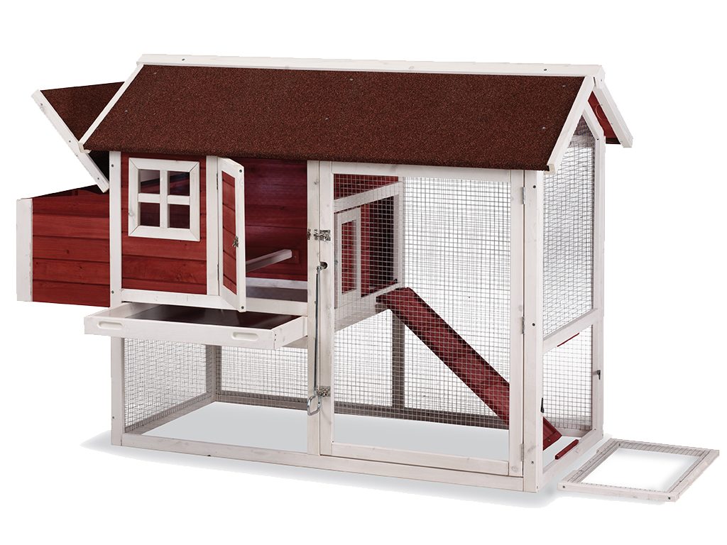 Vnější rozměry celého kurníku jsou 1710 x 810 x 1100 mm, a tak poskytuje pohodlí pro 6 -8 klasických nosnic. Navíc je kurník v atraktivní bílo-červené barvě. Jeho skvělé rozvržení prostoru poskytuje dostatek místa, jak uvnitř kurníku, tak také v maximálně využitém výběhu pro nosnice.