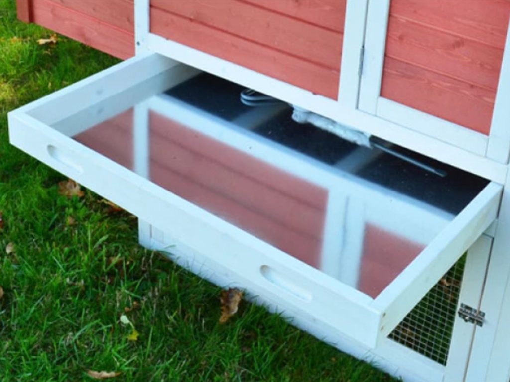 Čištění kurníku zvládnete hravě během chvilky díky výsuvnému trusníku. Také čištění snáškového hnízda nebude problém, díky výklopné stříšce.