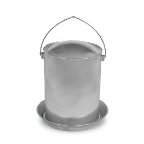 Napájecí uzavřený kovový kbelík pro drůbež - pro kuřata, slepice, krůty a další drůbež.