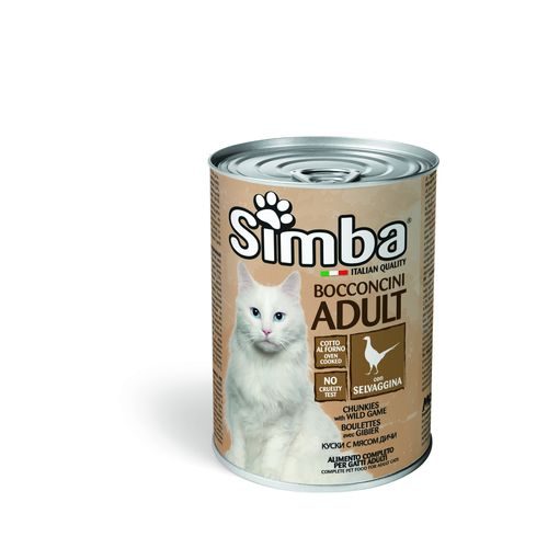 Simba Cat kousky s divočinou je kompletní krmivo pro dospělé kočky. Kousky v omáčce připravené z kvalitních ingrediencí, jako je perlička a kachna, zdroj bílkovin a minerálů, se pečou v troubě, aby zvýraznily jejich přirozenou chuť a stimulovaly každodenní chuť k jídlu vašeho mazlíčka. Složení bylo vyvinuto se specifickou kombinací vitamínů A-D3-E, aby splnilo nutriční požadavky denní potřeby vašeho mazlíčka. Bez přidaných barviv a konzervačních látek.