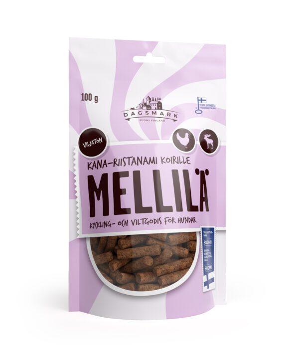 Pamlsky MELLILÄ jsou vyrobeny z finského kuřecího, losího a sobího masa. Neobsahují obiloviny, žádné konzervační látky, barviva ani dochucovadla.