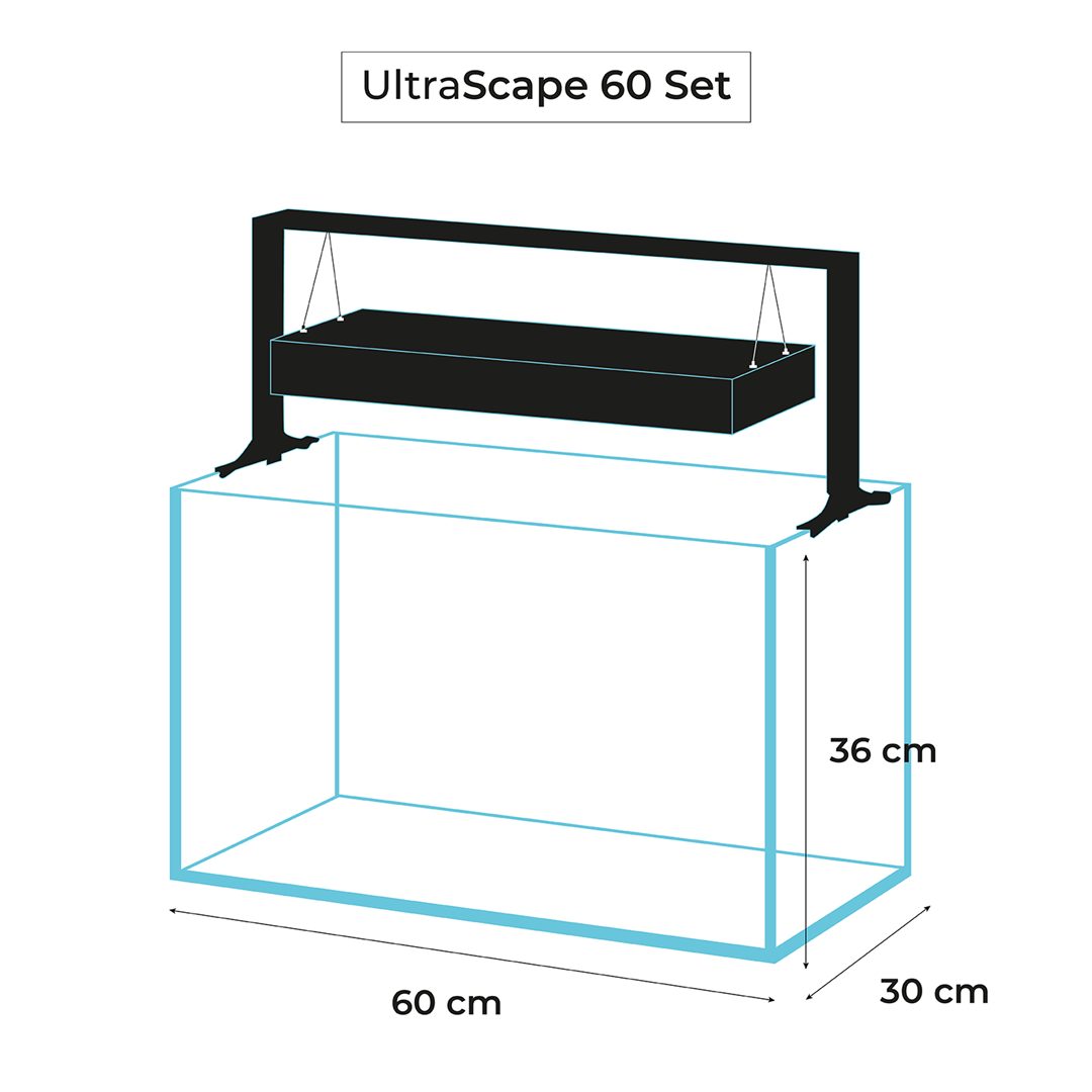 Opti sklo, otevřená skleněná nádrž, která nevyžaduje žádné další výztuhy, nastavitelný stojan s osvětlením Leddy Tube a výjimečný design jsou jen některé z předností sad UltraScape. Součástí sad je také elegantní speciální lampa vybavená vyměnitelnými osvětlovacími moduly Leddy Tube. Jednou z jejích výhod je, že lze vyměnit jednotlivé komponenty, nikoliv celé svítidlo. Lampa je umístěna na esteticky příjemném výškově nastavitelném rámu. Přidáním kabelového obalu jsme zajistili, že vzhled soupravy je propracovaný do všech detailů. Součástí sady je také podložka pod akvárium. Ideální proporce nádrží sady UltraScape umožňují vytvořit jakékoli uspořádání, ať už experimentální, nebo založené na klasických pravidlech. Průhledný silikon, střižný spoj, leštěné, broušené hrany a precizní lepení skla jsou důležitou finální úpravou prémiových nádrží. sady UltraScape jsou k dispozici ve dvou velikostech: K sadám UltraScape jsou dodávány také speciální skříňky. Černý saténový a dýhový povrch skříňky forest a saténový povrch skříňky snow byly zvoleny v souladu se současnými trendy v interiérovém designu. Do všech modelů skříněk lze umístit externí filtry AQUAEL - Ultramax a Ultra Filter. Dalším prvkem skříní UltraScape jsou speciální otvory umístěné na bocích pro hadice. Umožňují zcela uzavřít filtr uvnitř skříně a pohodlně umístit hadice na boční stěnu nádrže. Skříně jsou také vybaveny policí na příslušenství a výškově nastavitelnými nožičkami. Skříň UltraScape 60 se dodává se 6 nožičkami, zatímco skříň UltraScape 90 se dodává s 9 nožičkami. To je množství, které zajišťuje stabilitu a rovnoměrné rozložení hmotnosti i při nejtěžším uspořádání.