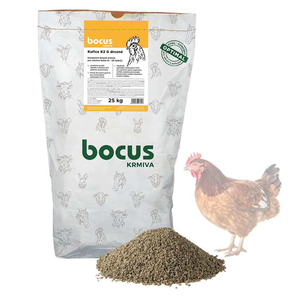 Kompletní drcené krmivo pro odchov kuřic ve věku 5 - 20 týdnů. Drcená granule přispívá k rovnoměrnému rozložení živin v krmení.