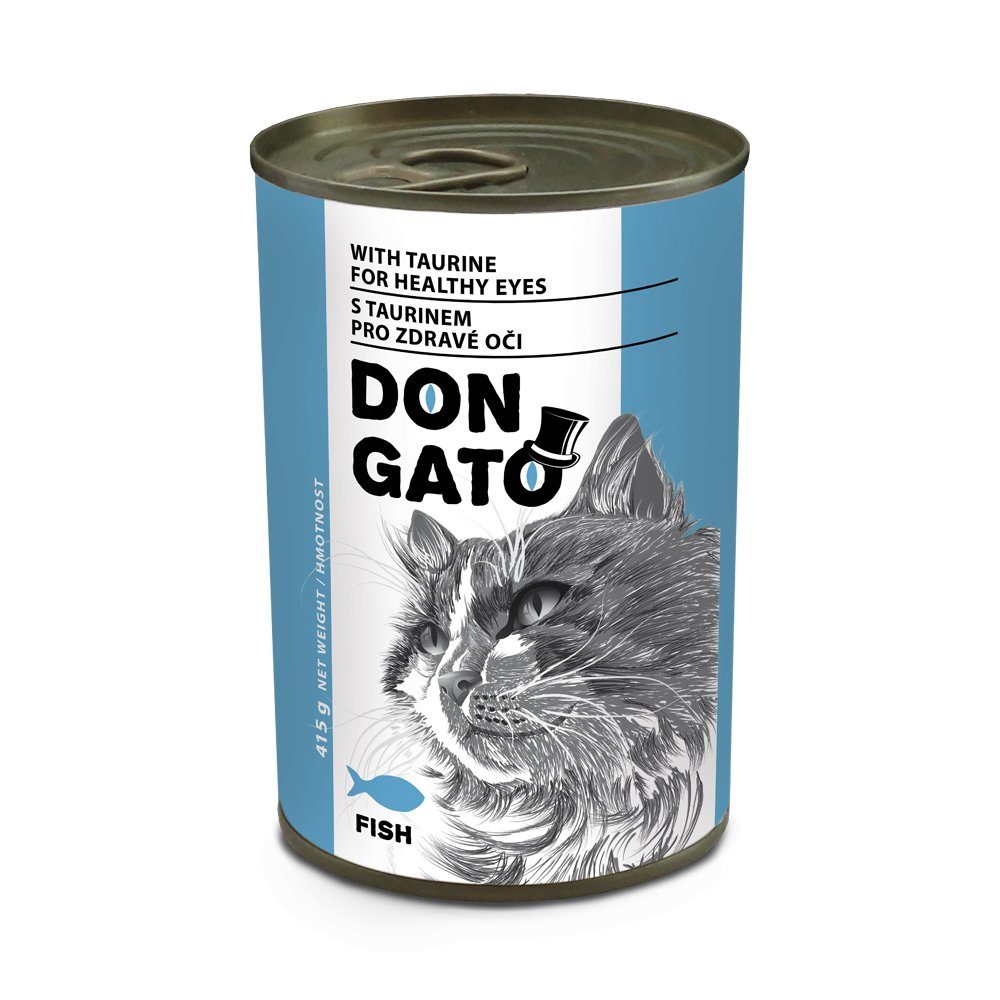 Konz.DON GATO kocka - ryba 415g Kompletní krmivo pro dospělé kočky s rybou. Složení: maso a výrobky živočišného původu (ryba 4 %), zrna obilovin a výrobky z nich