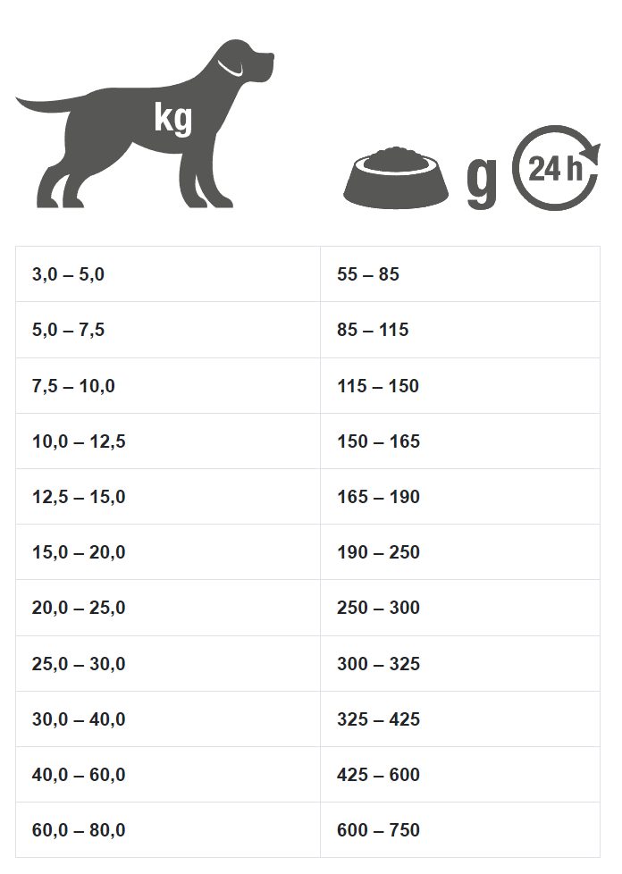 Čerstvé kuřecí maso (70 %), zlomková rýže, sušené kuřecí bílkoviny, sušený hrášek, sušené pivovarské kvasnice, rostlinná vlákna, sušená jablečná dužina, sušená čočka, kokosový olej, za studena lisovaný řepkový olej, za studena lisovaný lněný olej, lososový olej, extrakt ze slávky zelenoústé, extrakt z rozmarýnu.