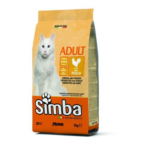 SIMBA CAT CHICKEN kompletní krmivo pro dospělé kočky všech velikostí. Složení bylo vyvinuto se speciální kombinací vitamínů A-D3-E, aby vyhovovalo nutričním potřebám koček. Vyvážená výživa složená z kvalitních ingrediencí, jako je hovězíí maso, zdroj bílkovin a minerálů, vybraná pro svou přirozenou schopnost uspokojit denní potřeby zvířat. Bez přidaných barviv a umělých konzervačních látek.