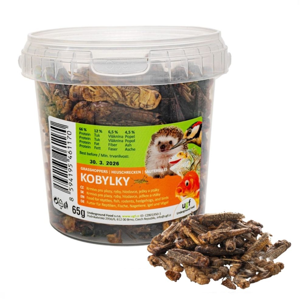 Kobylka je výživné doplňkové krmivo bohaté na proteiny pro terarijní zvířata, jezírkové ryby, hmyzožravé ptáky a malé savce.