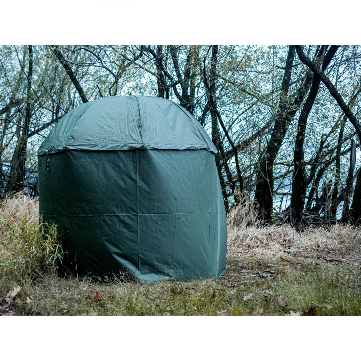 Velmi propracovaný deštník s nastavitelným kloubem, odnímatelnou bočnicí a předním panelem na zip. Pření panel je na zip a lze ho snadno srolovat a upnout přezkami ve vrchní vchodové části. Na plášť byl použit lehký, ale 100% nepromokavý a pogumovaný nylon s garantovaným vodním sloupcem 3.000mm. Precizně páskou zalepené švy pláště, zaručí 100% voděodolnost. V předním panelu je slídové okénko. Zesílené okraje pláště, zajišťující jeho ochranu proti poškození. Polohovací a zesílená středová tyč.
