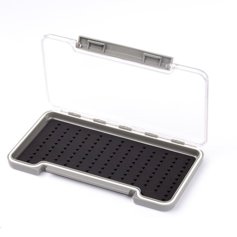Muškařská krabička ve standartním rozměru, kompaktní a výborně se hodí na uskladnění vaších mušek. Její výhodou je transparentní víko, které nám dává absolutní přehled nad uspořádáním jednotlivých mušek. Vyplň krabičky je z černé silikonové pěny a díky rychlému a bezpečnému vodě odolnému uzávěru jsou maximálně v bezpečí. Na krabičce je také natištěno mezinárodní měřítko háčků pro přesnou délku háčku.
