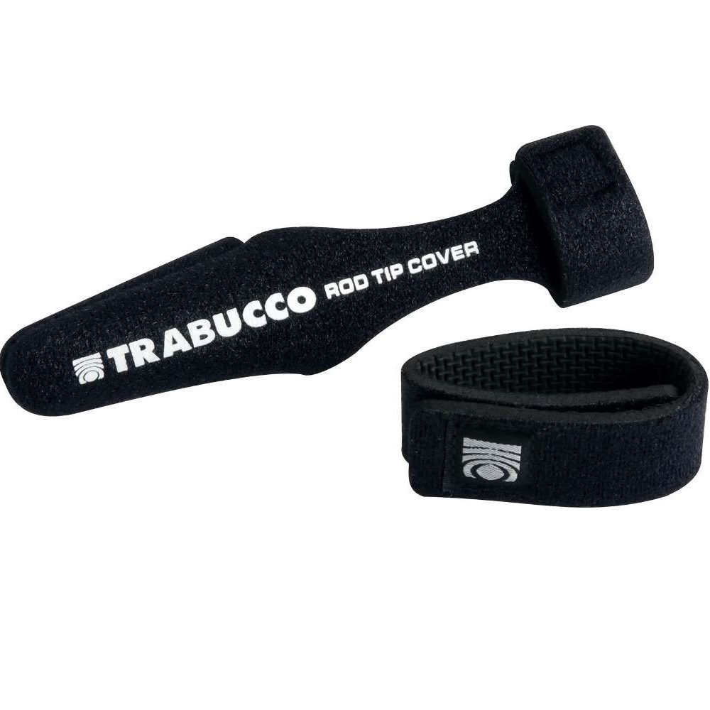 Neoprénový pásek na spojení spodního dílu s rukojetí s ostatním dílem prutu. Kryt špičky pak slouží pro zabezpečení vrchní části prutu, koncového očka. Vyrobeno z molitanové směsi. Tištěné logo Trabucco na obou částech produktu.