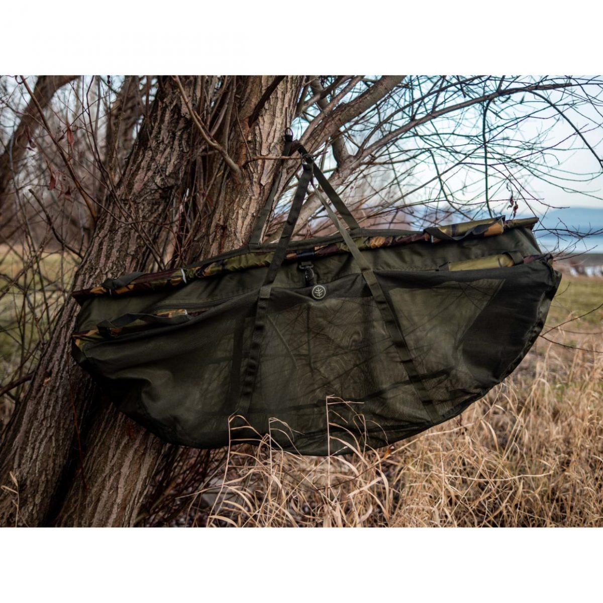 Velmi rychle schnoucí materiál, který je navíc i velmi přátelský vůči rybám a nehrozí jejich poškození. Extra zesílené popruhy pro nošení nebo přenášení. Součástí jsou i čtyři plováky s reflektivními prvky. Dále pak sak obsahuje kapsu, kde nalezneme provázek v délce 5m. Dodáván včetně přepravního pouzdra. Je ideální pro mobilní rybáře.