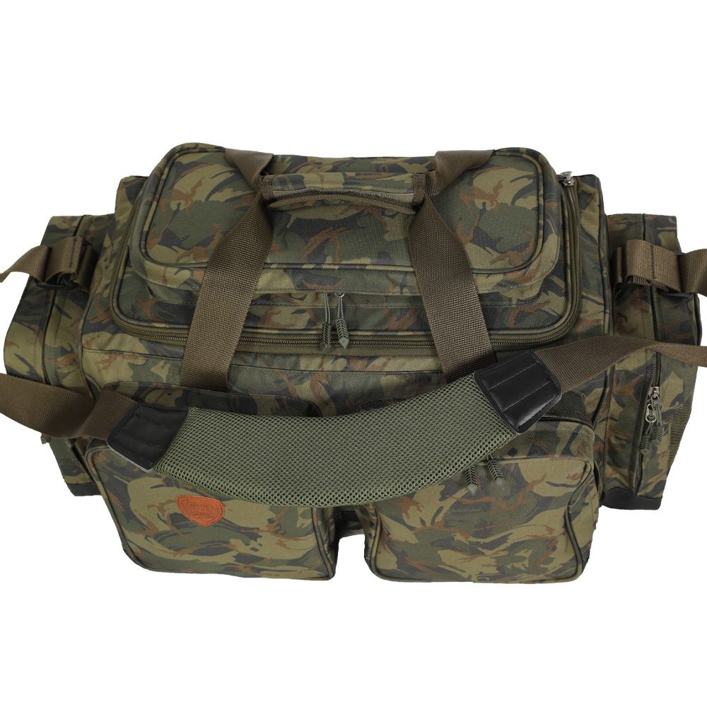 Vetší cestovní taška pro rybáře, která je osazena spoustou vnějších kapes, včetně praktické vrchní.