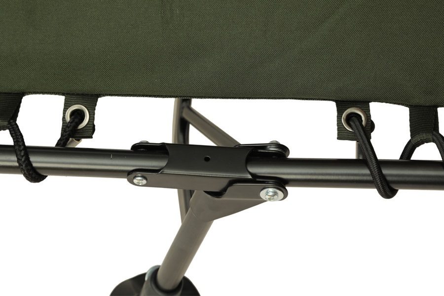 Kvalitně zpracovaná konstrukce má vysokou nosnost do 150kg. Nožičky lehátka jsou zakončeny velkými packami proti zaboření do bláta. Každý rybář si může na tomto lehátku nastavit požadovanou tuhost matrace.