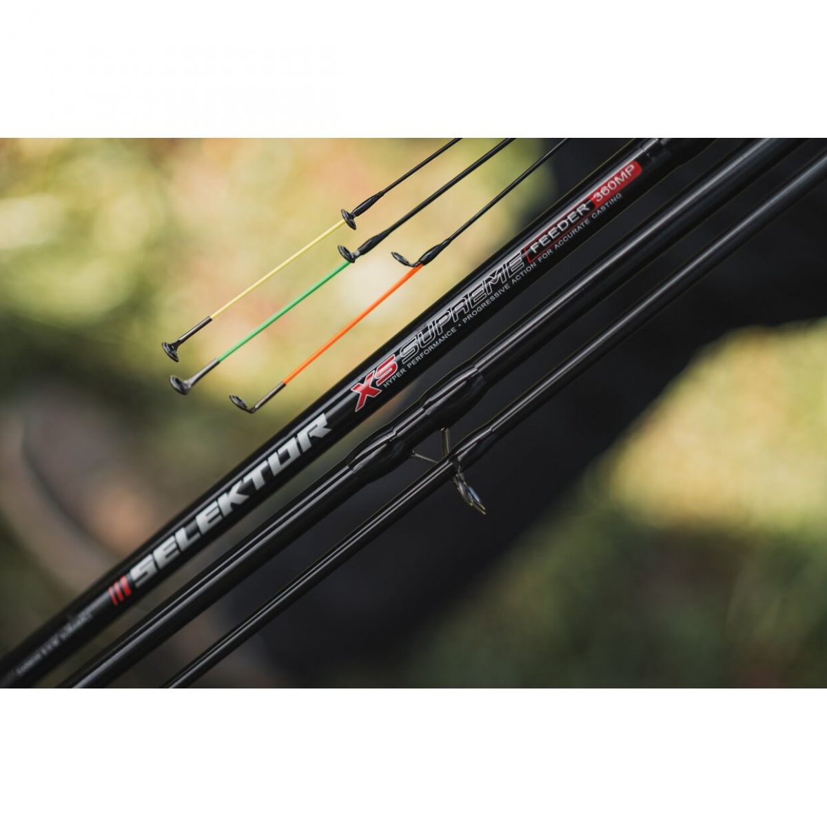 Feederový prut s polo-parabolickou akcí blanku, který obstojí krmítkové zátěže až do hmotnosti 80 g s náhozovu vzdáleností kolem 60 až 90 m.