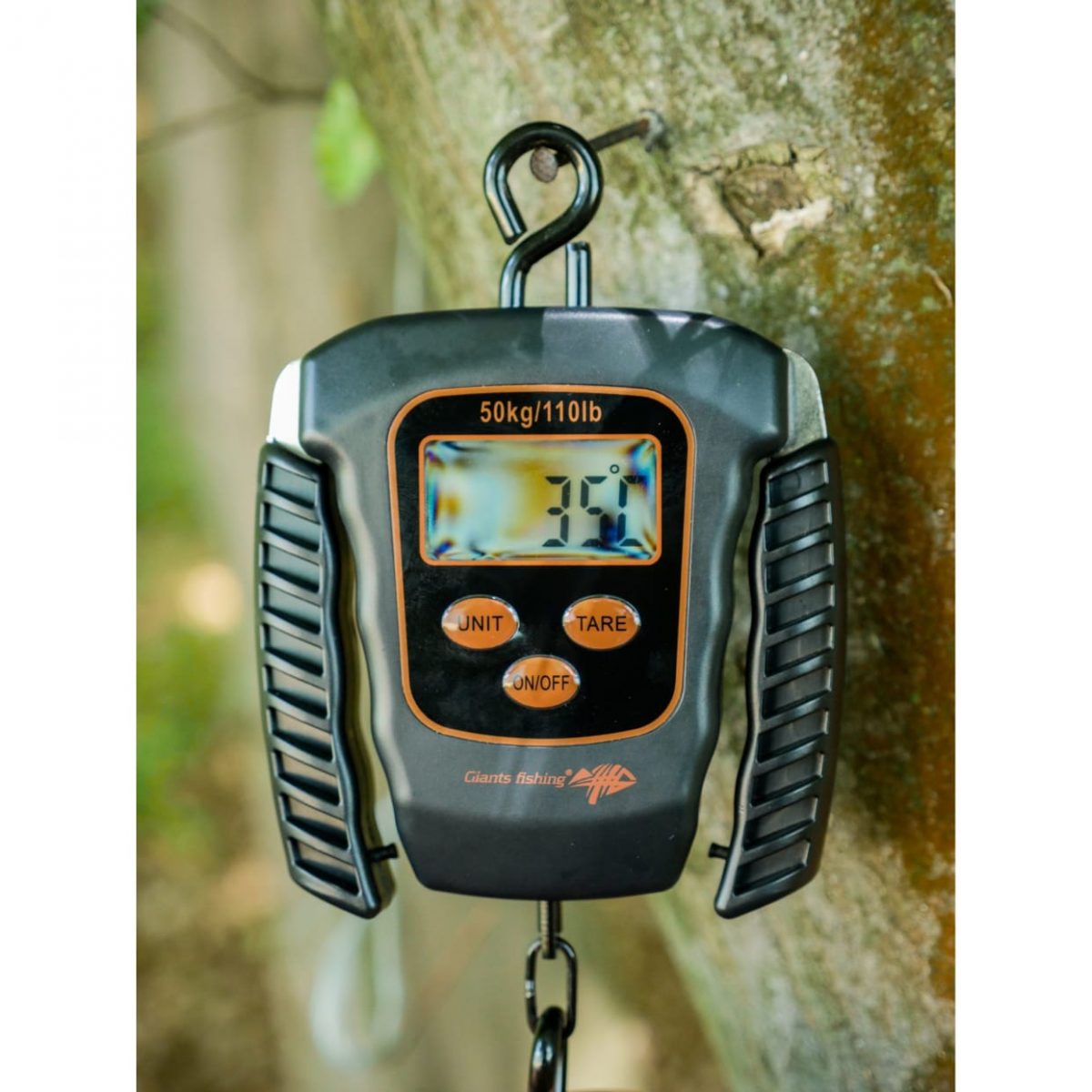 Digitální váha robustní konstrukce s velkým hákem, která je voděodolná a má nosnost do 50kg/110lb.