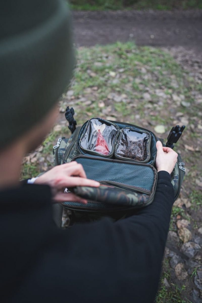 Luxusní batoh který má v přední části poutka na čtyři zavrtávací vidličky, které díky tomu máte rychle k dispozici.