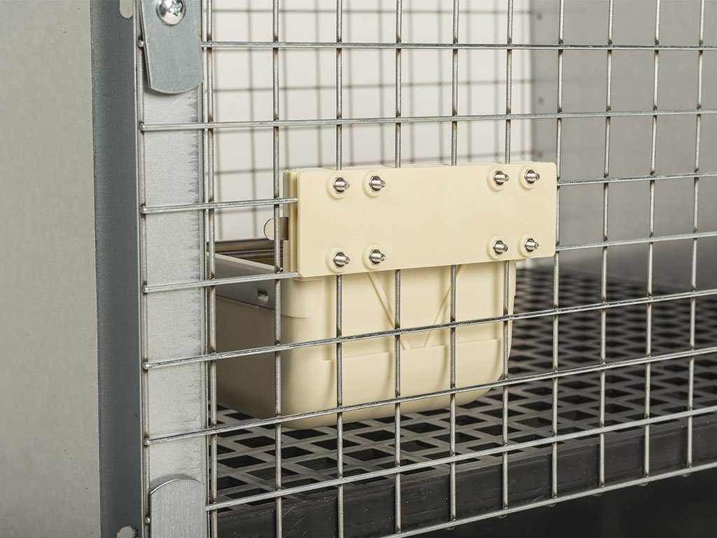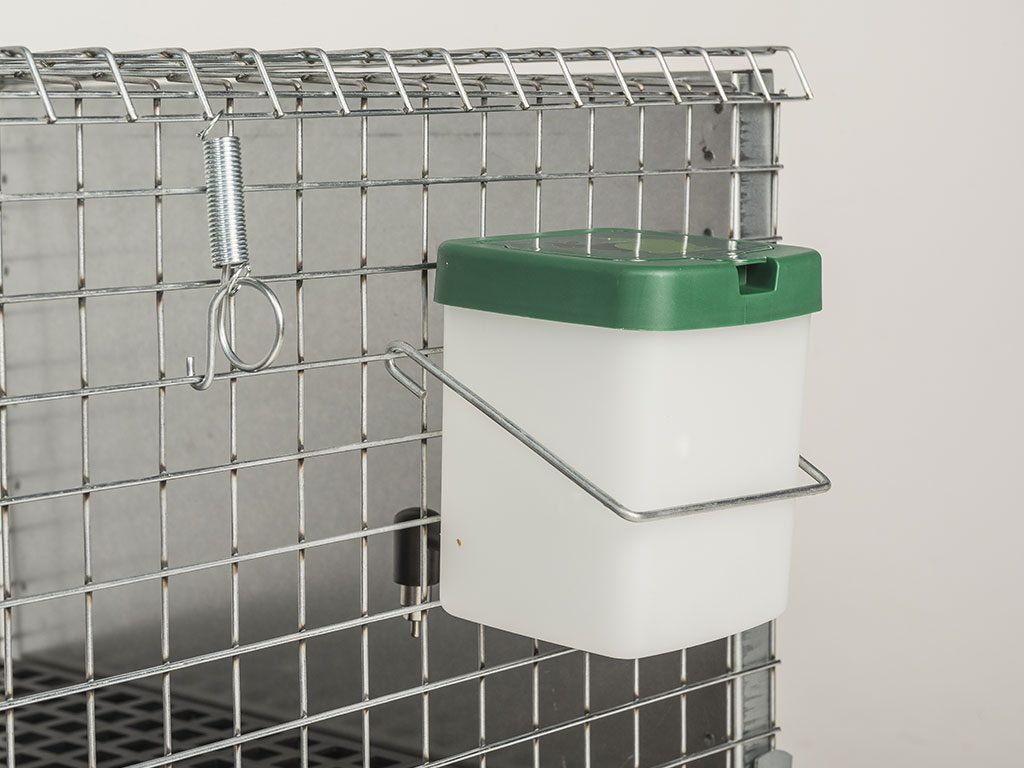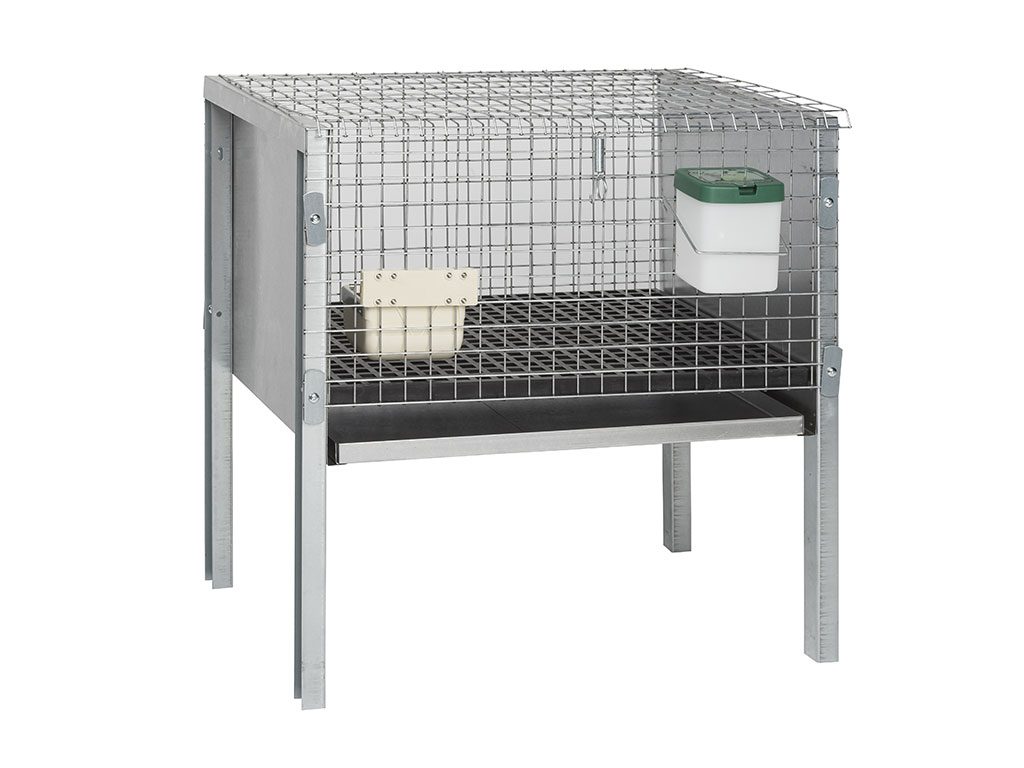 Klec pro králíky, pozinkovaná, na nohách, plastový podlahový rošt, vysouvatelný trusník, s krmítkem a napáječkou, rozměry 56x41x57 cm. Pokud hledáte skvělou a odolnou klec pro králíka, tak jste tady správně. Tato pozinkovaná klec Vám vydrží roky a poskytne králíkovi čisté prostředí. Díky plastovému podlahovému roštu bude trus králíka propadávat do trusníku, který snadno vysunete a vyčistíte. Plastová podlážka králíka nestudí a je navržená pro jeho pohodlí. Klec je vybavená také krmítkem a napáječkou a tak je vhodná pro okamžité používání bez nutnosti něco dokupovat.