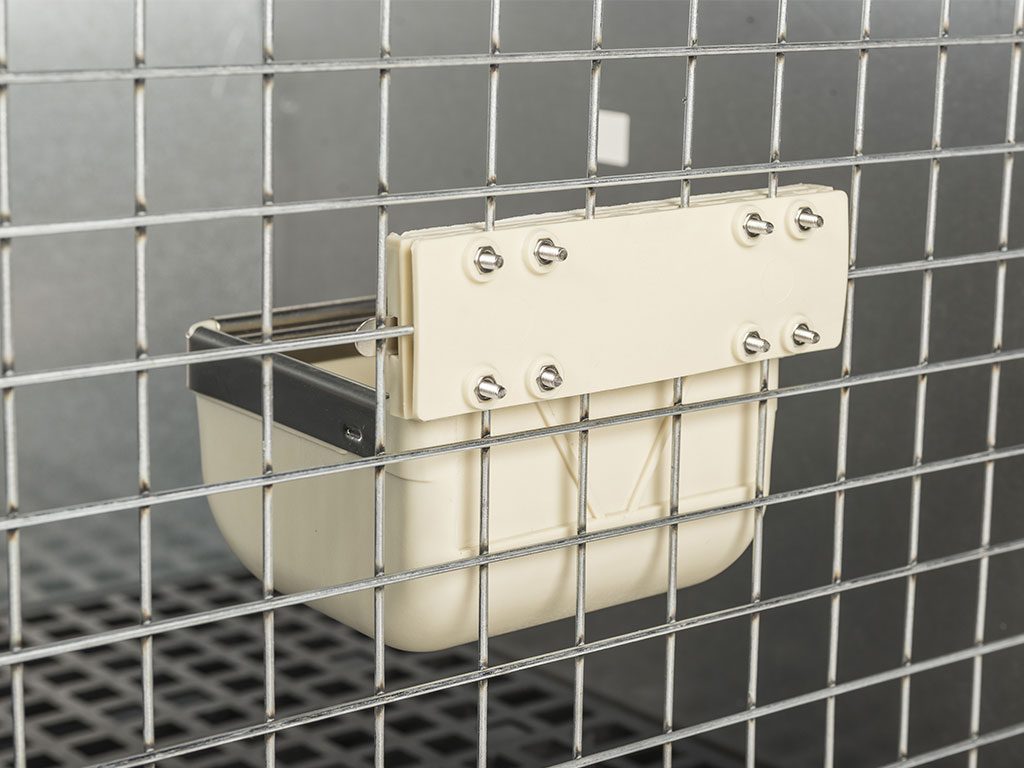 Klec pro králíky, pozinkovaná, na nohách, plastový podlahový rošt, vysouvatelný trusník, s krmítkem a napáječkou, rozměry 86x53x63 cm. Pokud hledáte skvělou a odolnou klec pro králíka, tak jste tady správně. Tato pozinkovaná klec Vám vydrží roky a poskytne králíkovi čisté prostředí. Díky plastovému podlahovému roštu bude trus králíka propadávat do trusníku, který snadno vysunete a vyčistíte. Plastová podlážka králíka nestudí a je navržená pro jeho pohodlí. Klec je vybavená také krmítkem a napáječkou a tak je vhodná pro okamžité používání bez nutnosti něco dokupovat.