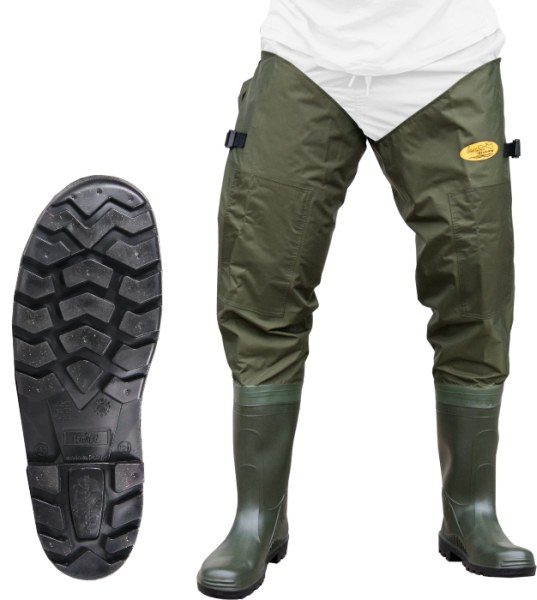 Holínky do rozkroku na brodění mají tlustou podrážku a pevnou gumovou botu která zabezpečuje dokonalou stabilitu i na kluzkém terénu.