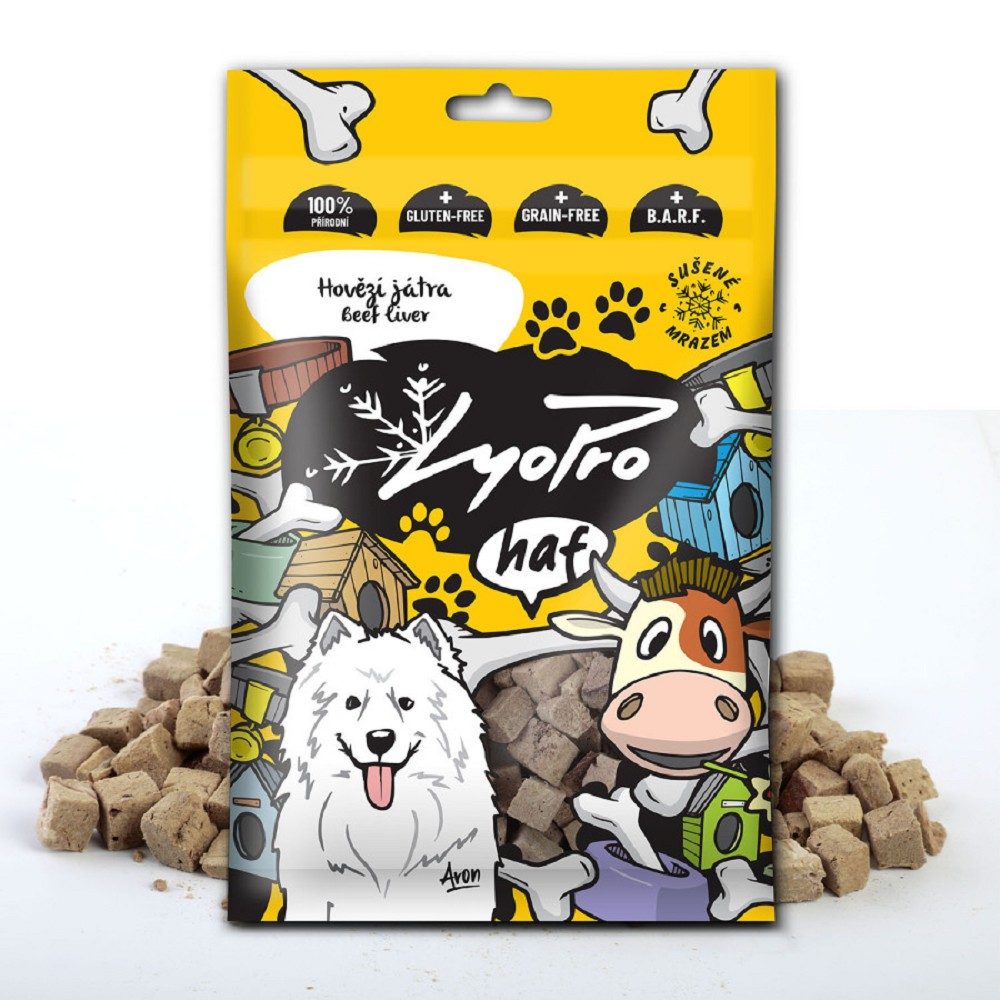 Analytické složky Hrubý protein 55%, Hrubé oleje a tuky 10%, Hrubá vláknina 2%, Hrubá popelovina 7%, Vlhkost 6% 4 největší výhody sušení mrazem Ve srovnání se sušením za použití teplého vzduchu má sušení mrazem řadu benefitů. Mrazem sušené maso… …neztrácí nutričně cenné látky Při lyofilizaci neboli sušení mrazem neprochází maso vysokými teplotami, a proto si uchová maximum vitamínů, minerálů, enzymů a jiných nutričně hodnotných látek stejně jako čerstvé maso. …uchová si čerstvou chuť i texturu Lyofilizace je šetrnou metodou sušení, při které maso neztrácí svou přirozenou barvu, strukturu ani lahodnou chuť. Chutná zkrátka vždy jako čerstvé. …neobsahuje konzervanty, barviva ani éčka Při lyofilizaci dochází k přirozené konzervaci masa. Není potřeba přidávat žádné konzervanty ani éčka, které uměle prodlužují trvanlivost a brání rychlé zkáze. …má dlouhou trvanlivost Další výhodou sušení mrazem je dlouhá trvanlivost. Svou kvalitu, lahodnou texturu i chuť si maso uchová po velmi dlouhou dobu. Ideální volba pro vyznavače BARF, kočičí alergiky i celiaky Mrazem sušené maso Lyopro je ideálním pamlskem pro všechny kočičí gurmány a vyznavače BARF – syrové stravy. Protože pamlsky neobsahují dráždivé konzervanty, barviva ani nejčastější alergeny, je skvělou volbou pro psy trpící celiakií či potravinovými alergiemi.