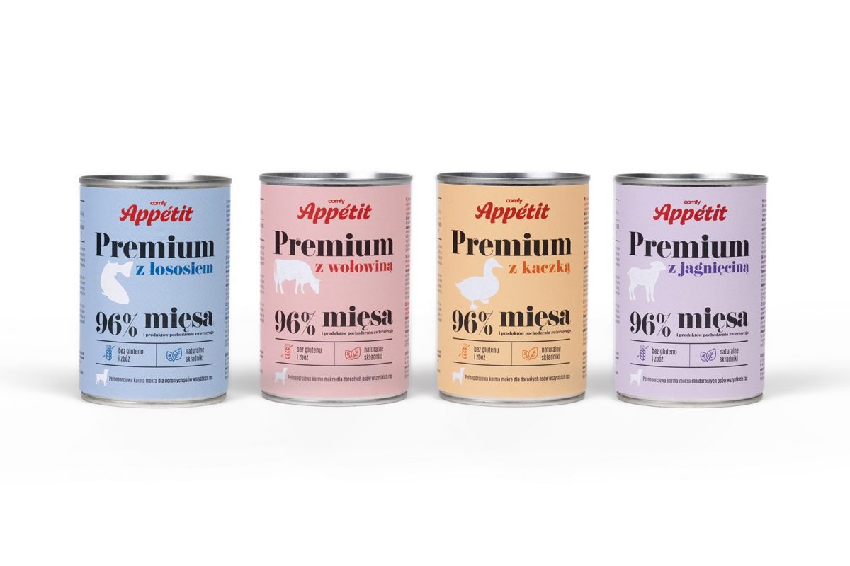 Comfy Appetit Premium je kompletní mokré krmivo pro dospělé psy, jehož složení je tvořeno přírodními surovinami. Výrobek obsahuje 96 % masa a živočišných složek.