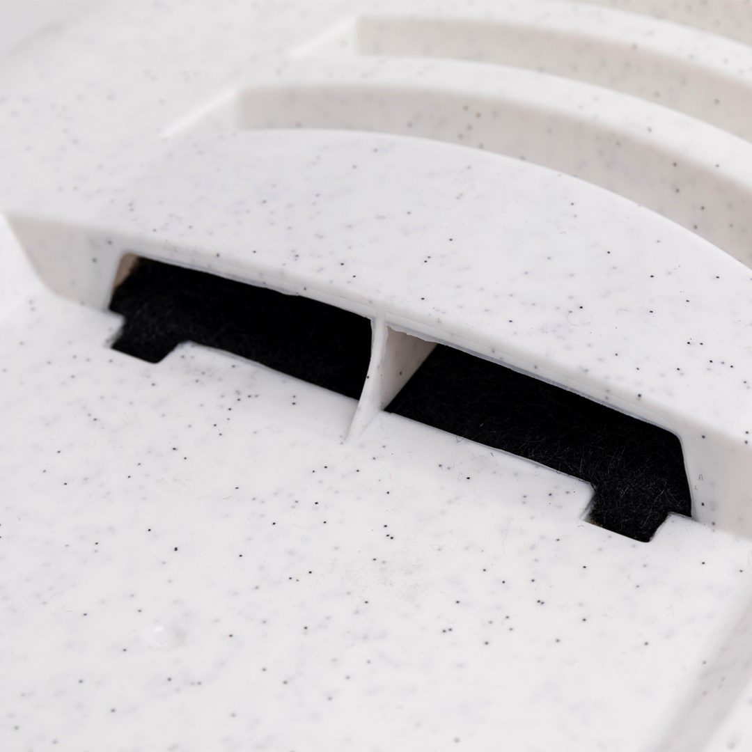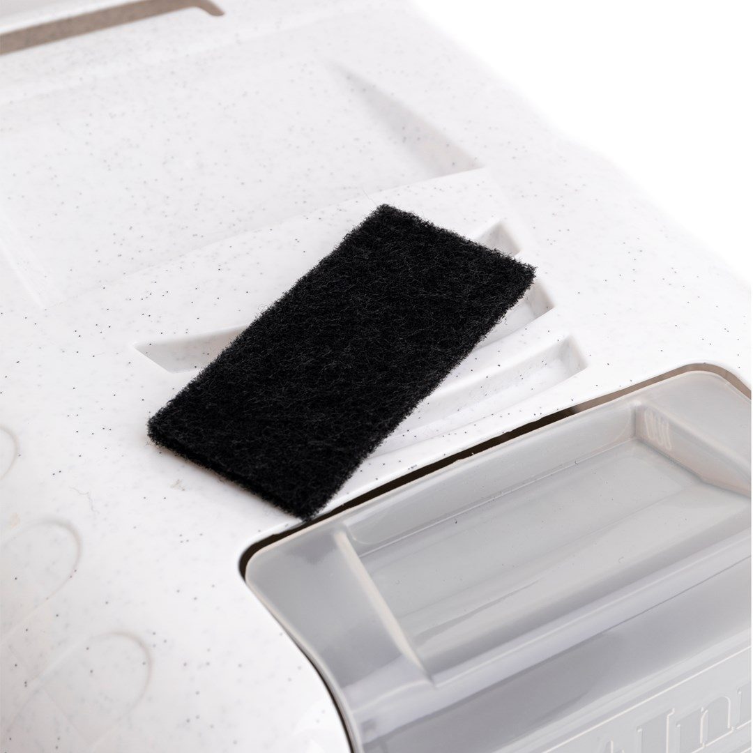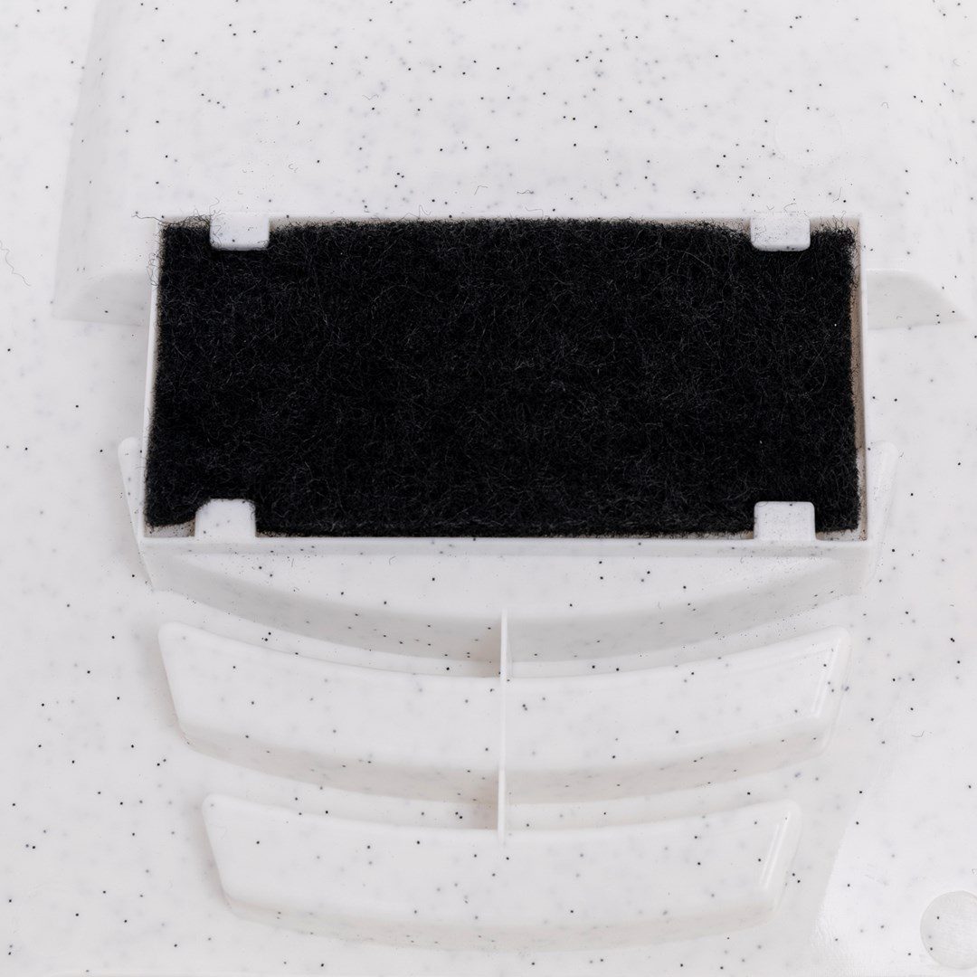 Zakrývá obsah a díky zabudovanému uhlíkovému filtru ještě lépe zadržuje pachy.