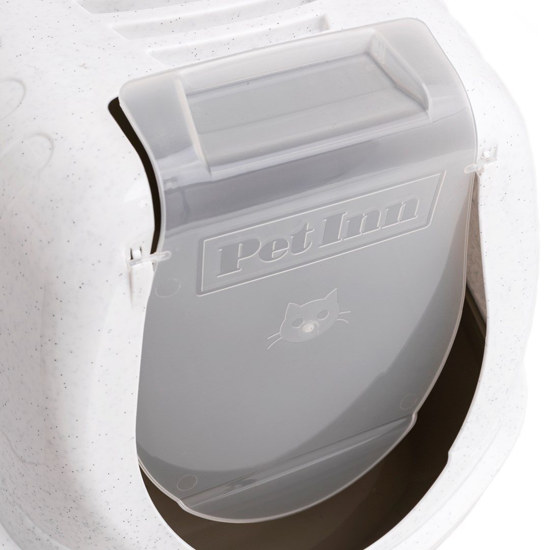 Kočičí toaleta, díky níž je zajištění čistoty v místnosti a hygieny uvnitř záchůdku opravdu snadné. Její hlavní výhodou je odnímatelné víko vybavené výklopnými dvířky.