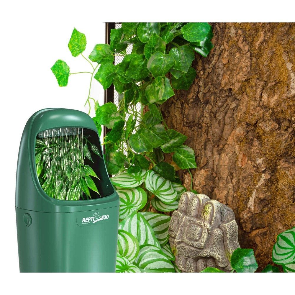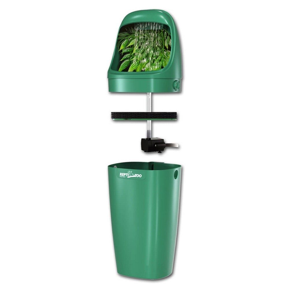 V horní otevřené části se nachází rostlina, která je za pomoci čerpadla neustále skrápěna vodou, čímž se sama stává napájecím prvkem pro ty druhy plazů, kteří olizují vodu z listů a nepijí z nádoby.