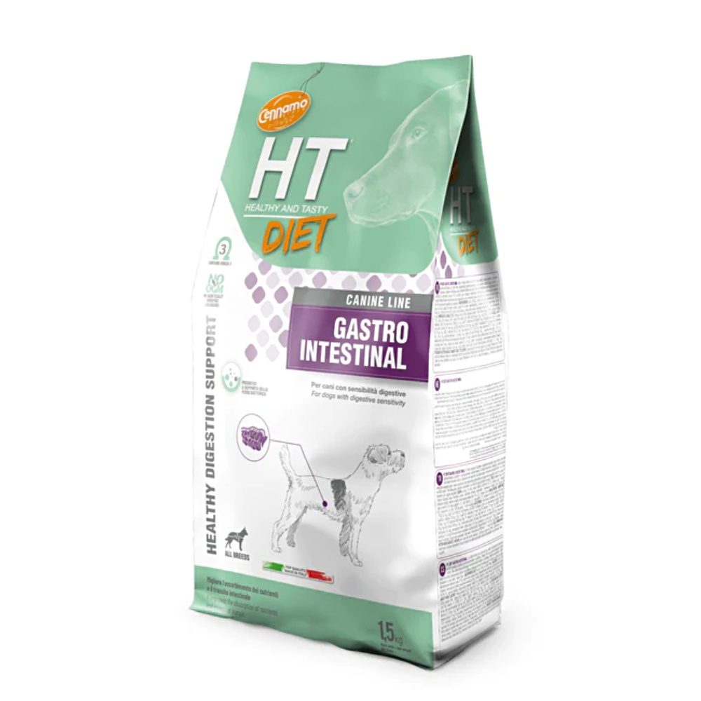 HT DIET Gastro Intestinal Dog Adult obsahuje fermentovatelná vlákna a zvýšenou hladinu elektrolytů, které pomáhají udržovat střevní zdraví a rovnováhu. Obsahuje také FOS a MOS, které posilují střevní mikroflóru a stimulují střevní imunitní systém, což přispívá k celkovému zdraví a pohodlí vašeho psa. Všechny složky jsou vysoce stravitelné a mají nízký obsah tuku. Nedoporučuje se pro březí a kojící feny.