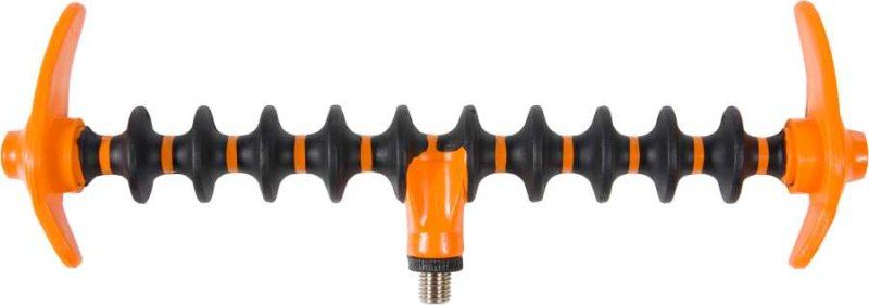 Dostatečně dlouhá rybářská hrazda pro uložení jednoho nebo dvou prutů. Pogumovaný povrch zabraňuje poškození prutů a boční nastavitelná aretace jejich vypadnutí z hrazdy při razantním záběru. Takže je úpně jedno pod jakým úhlem zapíchnete rasošku do země. Standardní závit sedí do většiny vyráběných rasošek a stojanů. Univerzální hrazdu využijete u většiny lovných technik jako jsou feeder, method feeder, plavaná nebo položená.