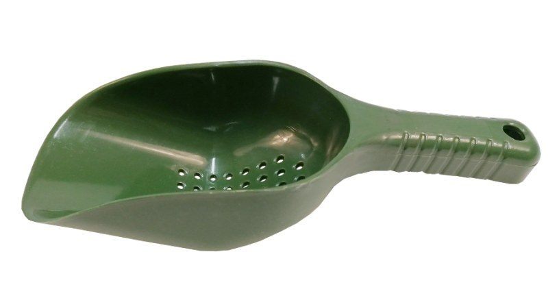 SPORTS IMP zakrmovací lopatka je jednoduchá plastová lopatka, která slouží pro míchání, dávkování nebo zakrmování. Dno lopatky je děrováno aby z partiklu nebo krmné směsi odtekla přebytečná tekutina. Rukojeť má protiskluzovou úpravu pro lepší manipulaci a úchyt. Celková délka lopatky 25cm s rozměrem naběračky 6,5x9x15cm.